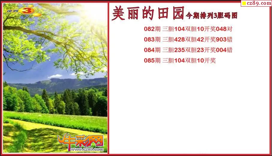 首页 > 排列3图谜 > 2026085期P3美丽的田园胆码图