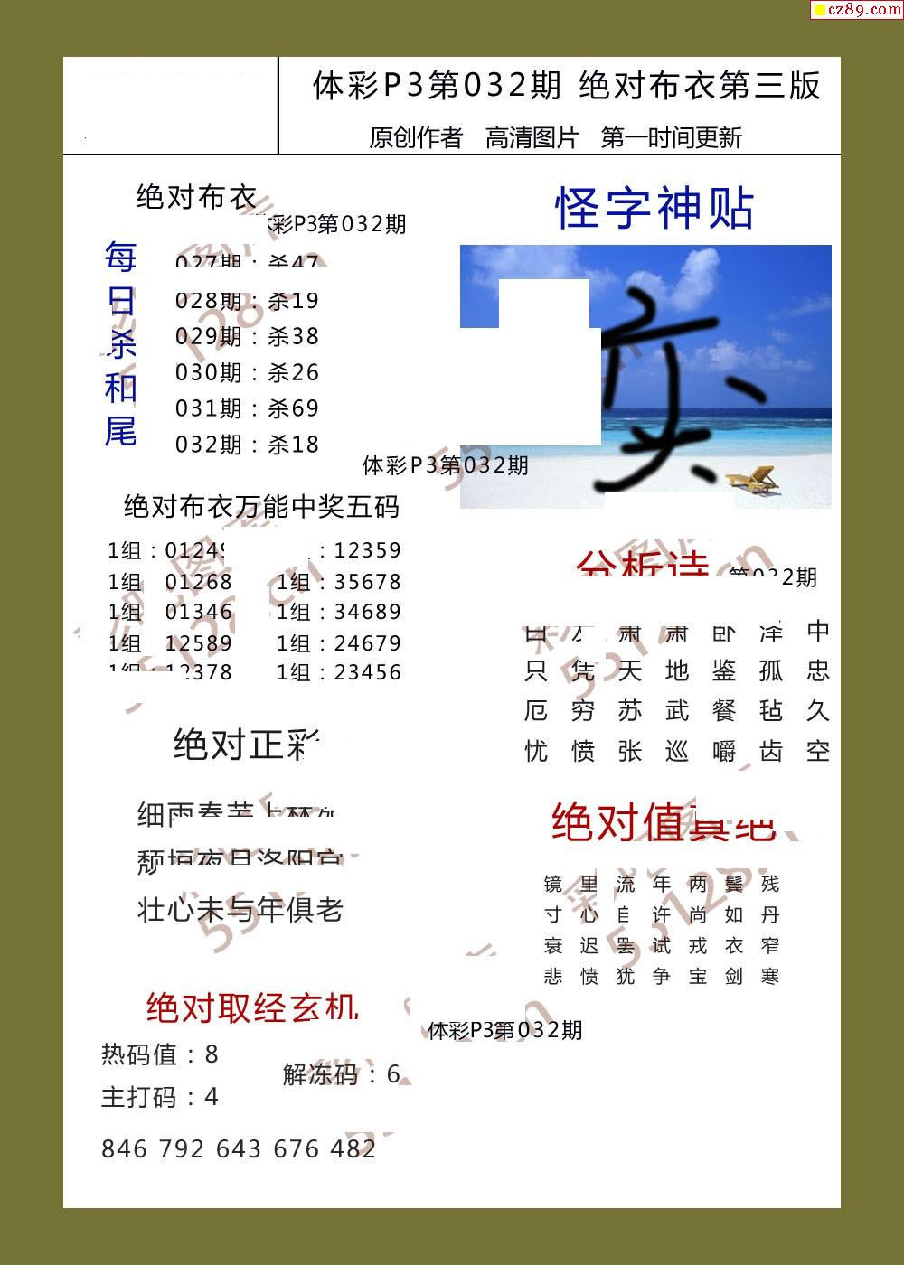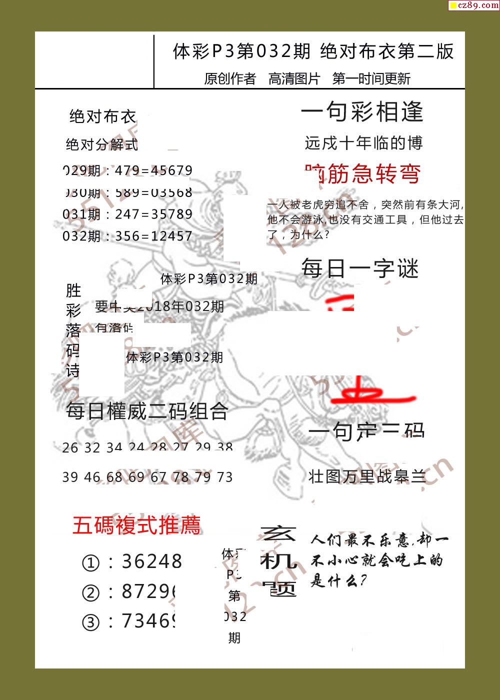 绝对布衣032期体彩p3图谜